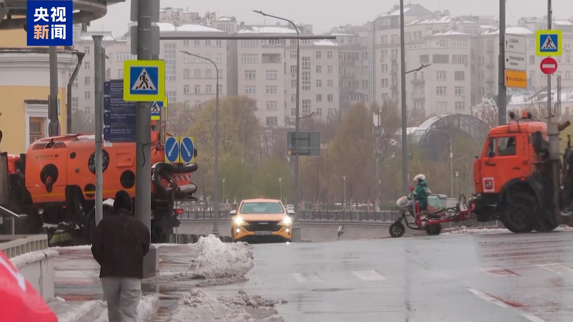 总台报道员 普罗金:湿雪、降雨和强风交加,即使是对天气变化习以为常的莫斯科人,也难以承受这样的极端天气,雨伞、胶鞋和保暖衣物都难以招架。
